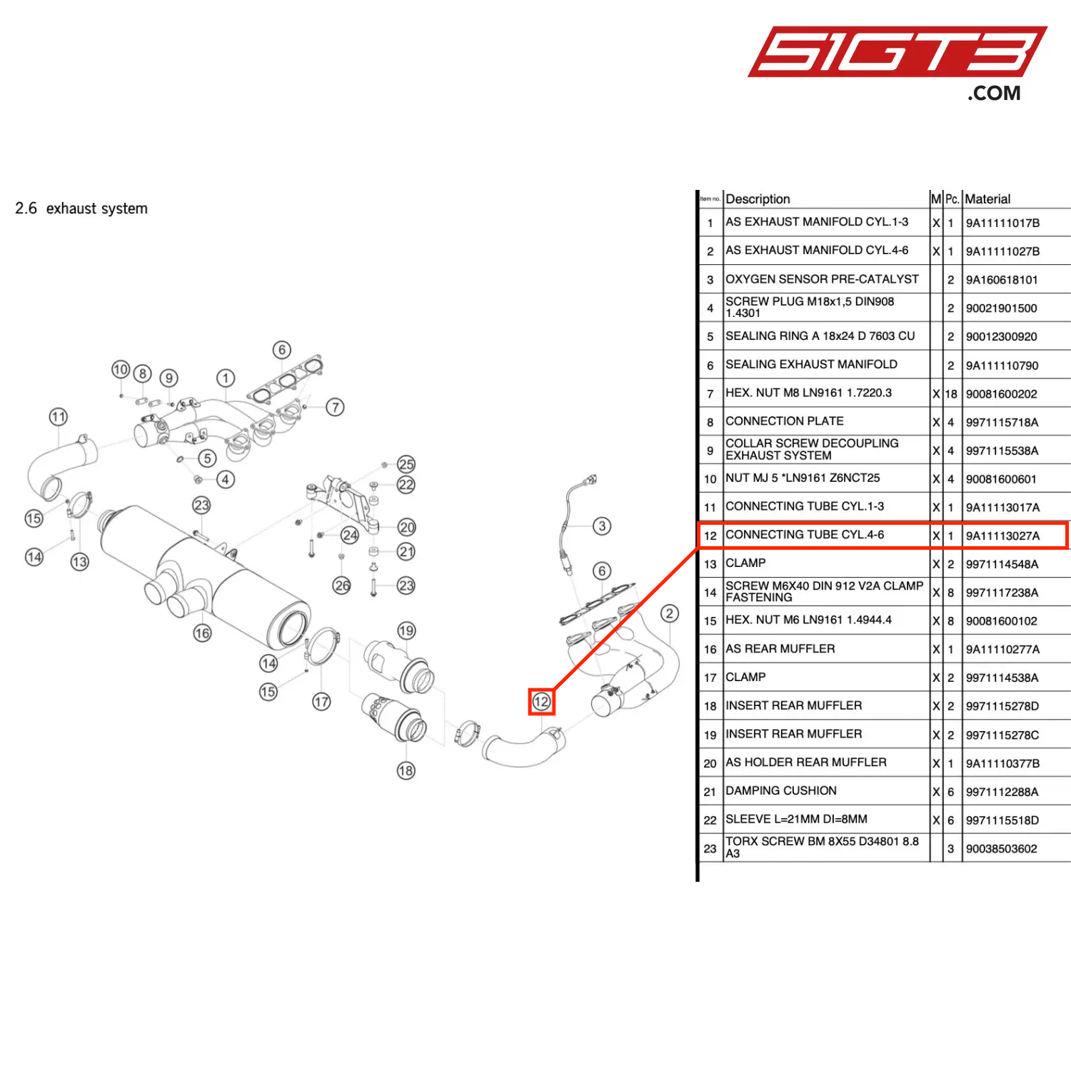 VERBINDUNGSROHR ZYL.4-6 - 9A11113027A [PORSCHE 991.1 GT3 R]