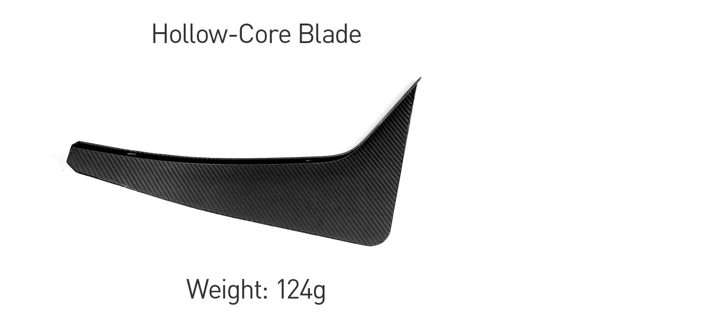 - Motorsport Material & Construction: Crafted from aerospace-grade dry carbon fiber, plus each blade incorporates a proprietary hollow-core structure to maximize the weight-to-strength ratio.