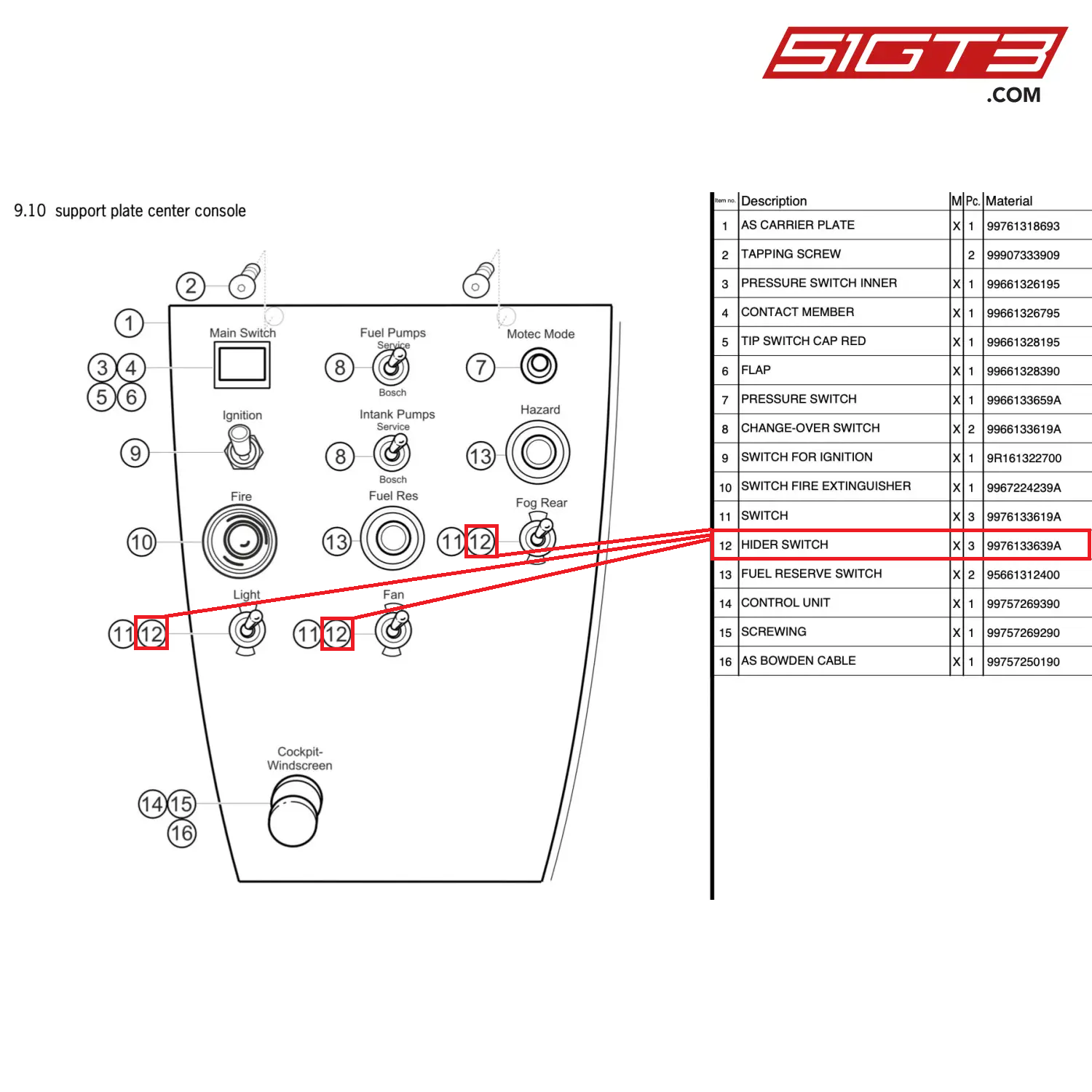HIDER SWITCH - 9976133639A [PORSCHE 997.2 GT3 Cup]
