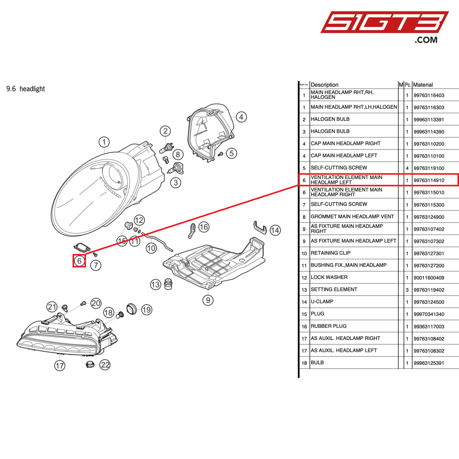 VENTILATION ELEMENT MAIN HEADLAMP LEFT - 99763114910 [PORSCHE 997.2 GT3 Cup]